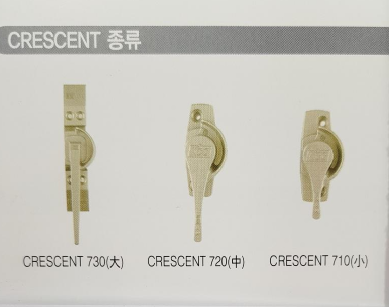 보통 창문의 잠금구는 크리센트(CRESCENT)라 해서 창문 가운데에 있는 쇠를 위로 올리면서 잠그고 아래로 내리면서 여는 형태의 잠금장치를 사용해왔습니다.